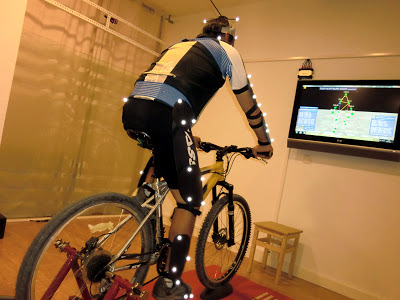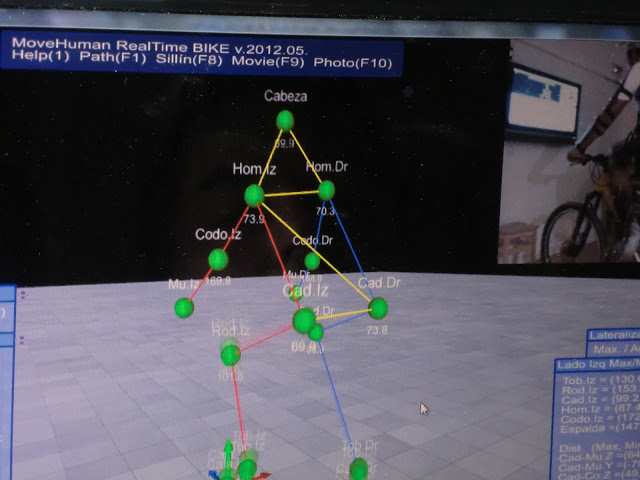 Gracias a estos marcadores, podemos capturar en TIEMPO REAL EL MOVIMIENTO DEL CICLISTA y visualizarlo sobre un AVATAR que nos aparece en el ordenador, y que tiene la antropometría del deportista que está siendo evaluado.
