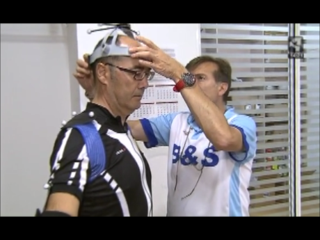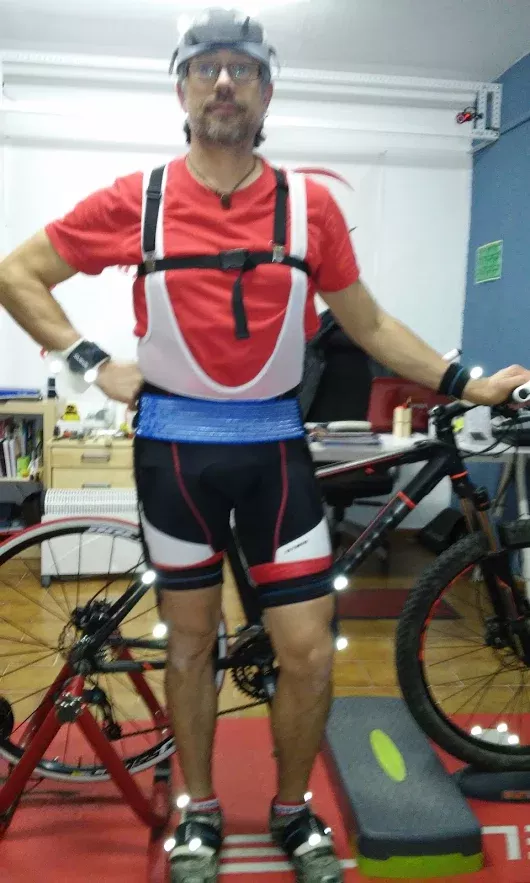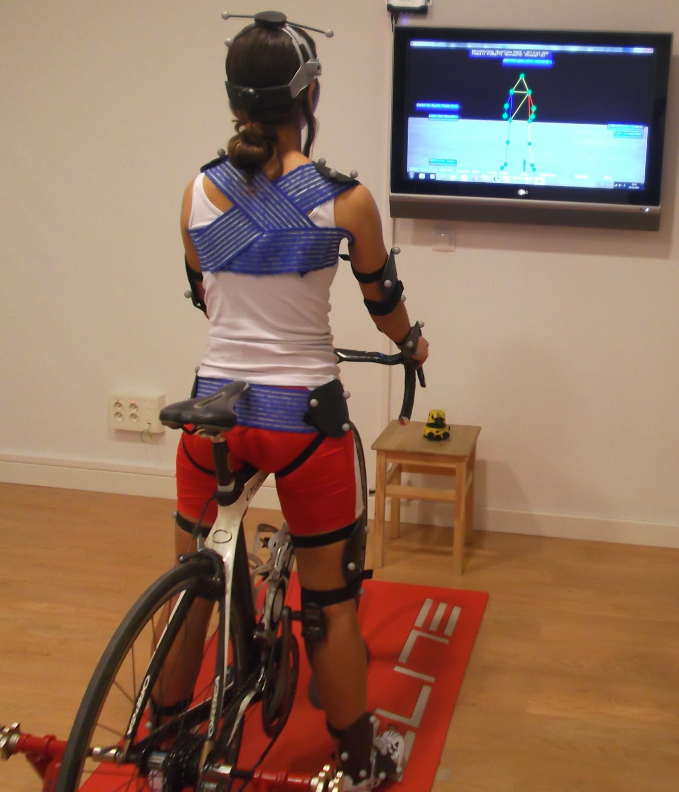 Como veis colocamos al ciclista unos marcadores que se adaptan a cada parte del cuerpo que se desee monitorizar, y se fijan sobre la propia ropa del individuo.